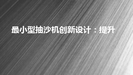 最小型抽沙機創新設計:提升效率的抽沙設備如何改變產業格局?